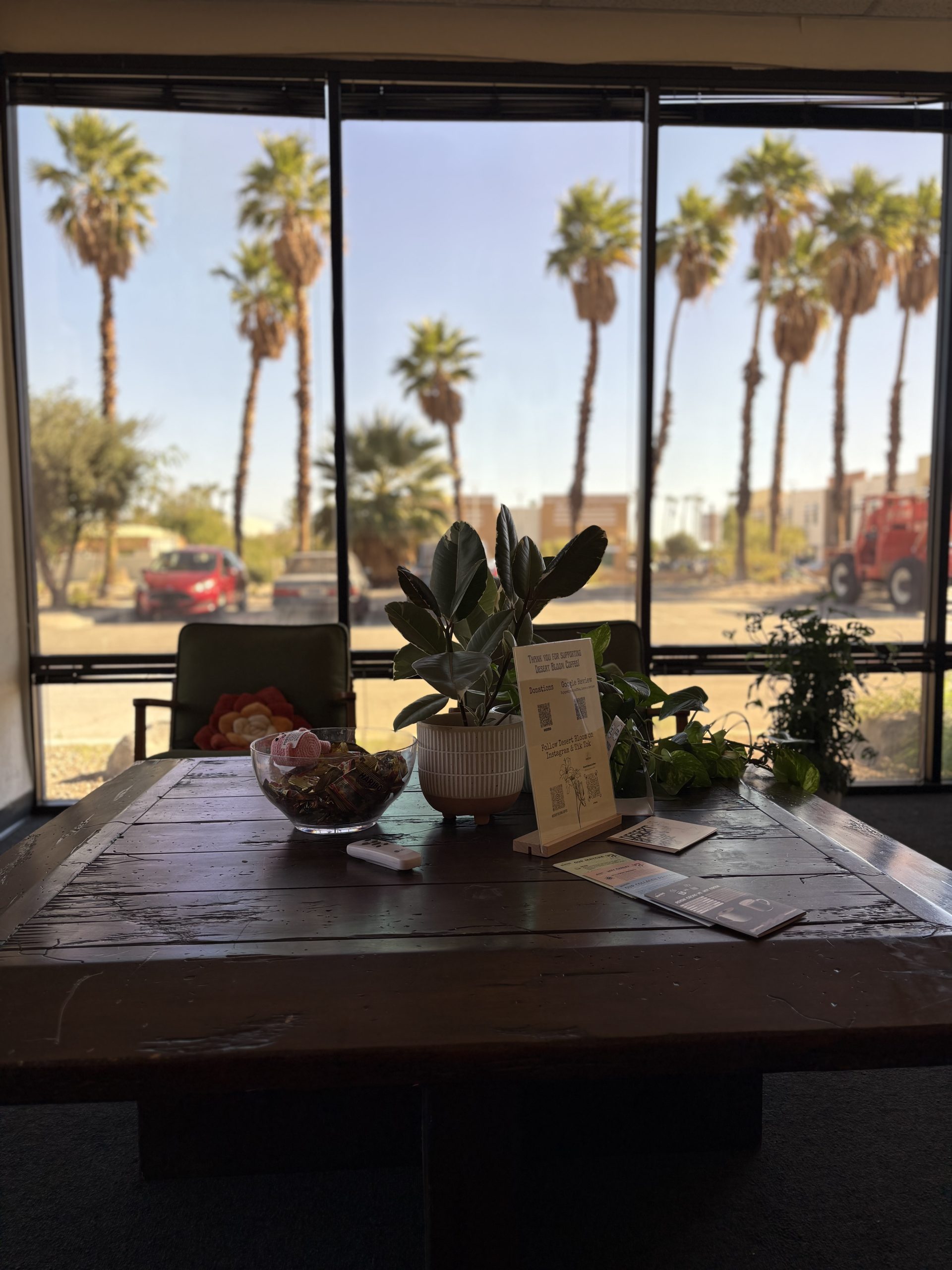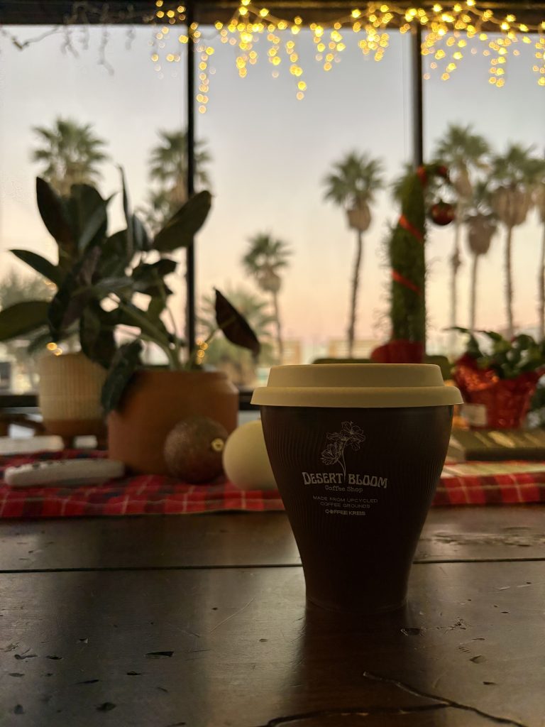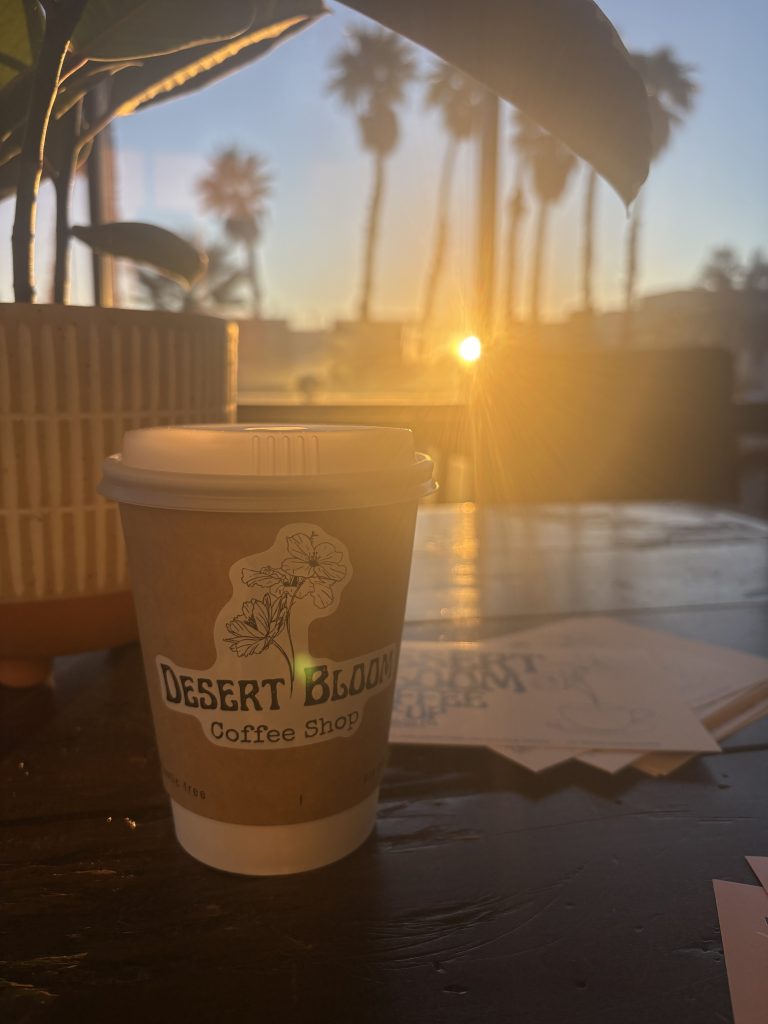 At Desert Bloom, the goal is simple: create a place where everyone feels at ease the moment they step inside. Think of it like settling into your favorite chair—comfortable, familiar, and yours. The space is designed to be open and bright, with large windows that frame the desert sky and fill the room with natural light. It’s a spot where the calm of the desert meets the energy of a good cup of coffee.